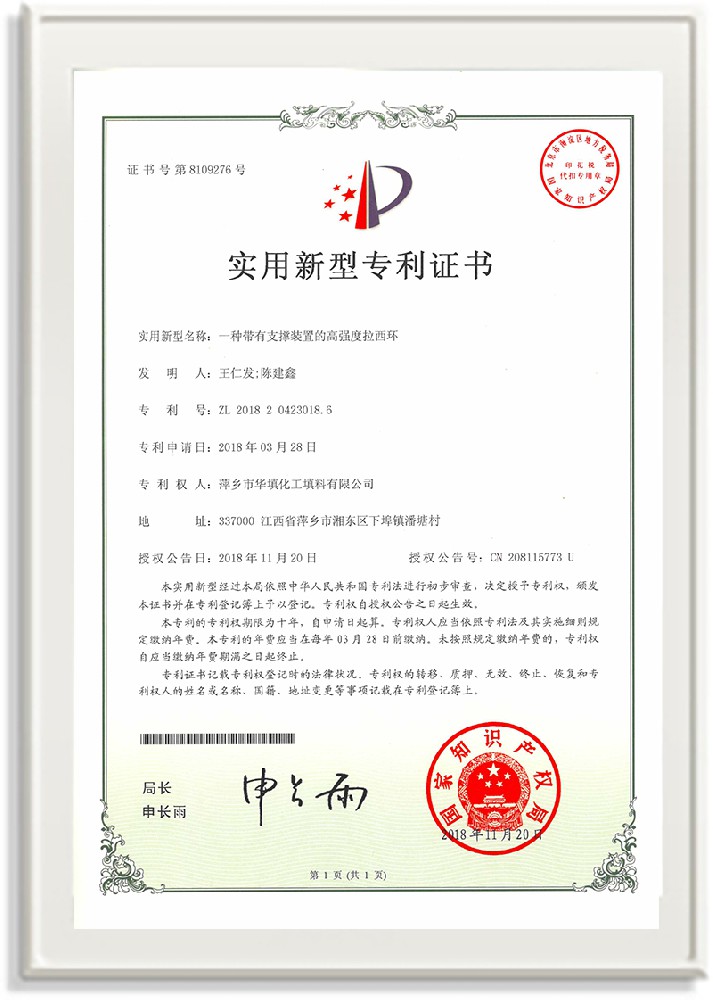 萍鄉市華填化工填料有限公司,位于320國道、109國道、浙贛鐵路、昌金高速公路貫穿其中,交通便利,是江西西部一顆燦爛明珠,創建于20世紀70年代初期,是中國石油天然氣股份有限公司“能源一號網”會員企業、中國石化物資采購電子商務網絡和中國海洋石油總公司采辦業務系統成員單位,是上海大學江西材料基因組工程產業研究院工業陶瓷產業創新聯盟基地,且通過ISO9001:2015質量管理體系、ISO14001:2015環境管理體系、ISO45001:2018職業健康安全管理體系認證的化工填料生產企業。公司擁有陶瓷、塑料、金屬填料、催化劑、活性氧化鋁、分子篩等產品生產線,現有固定資產3616萬元,占地面積3.8萬平方米。公司具有悠久的生產歷史、雄厚的技術力量和先進的生產工藝設備,可生產工業瓷球(支撐劑)、陶瓷、金屬、塑料質的規整、散堆化工填料及分子篩、催化劑、生化濾料、活性氧化鋁、石化助劑、活性炭、環保材料、耐火材料等系列的200多種規格型號產品。